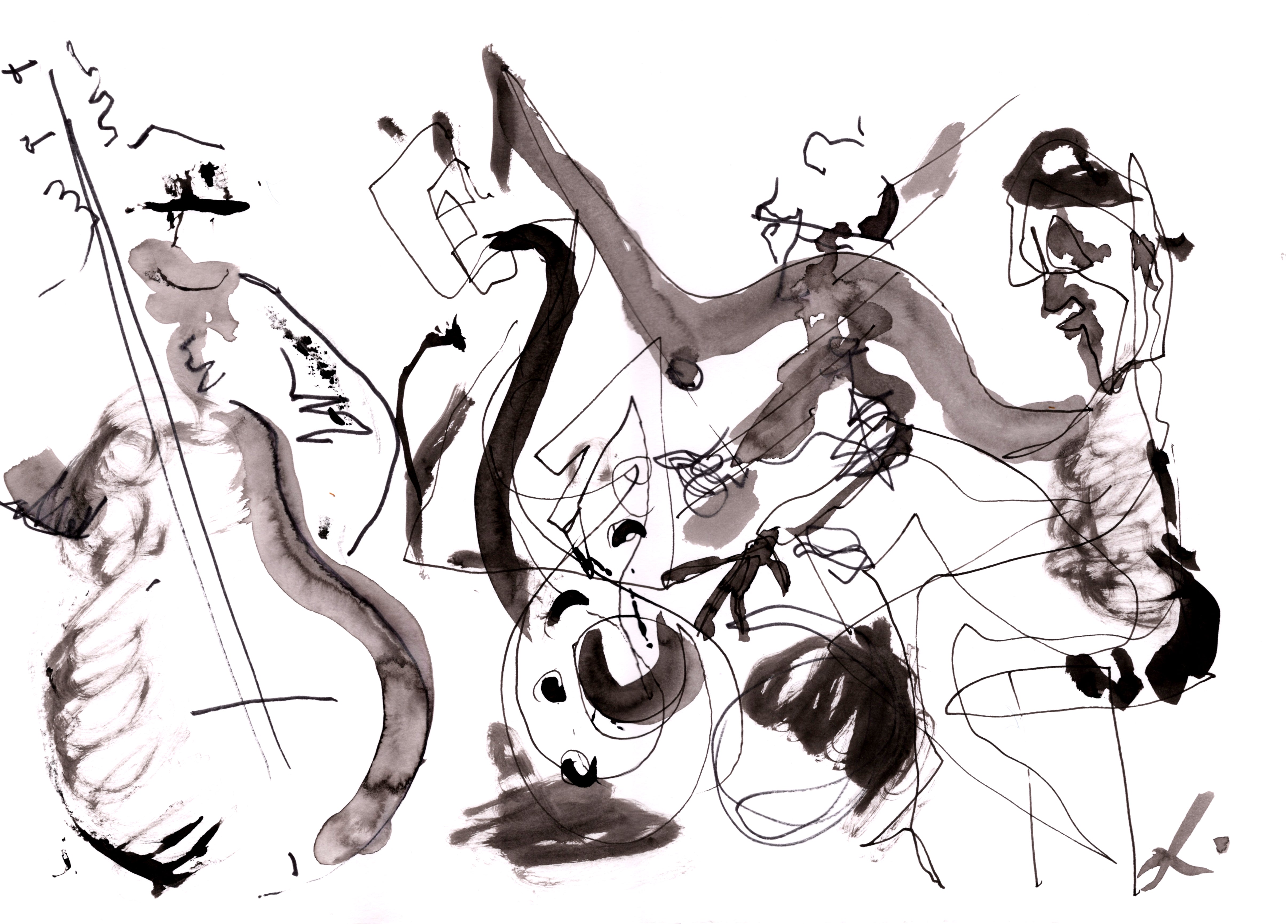 Brush, china ink and acrylic on scrap paper